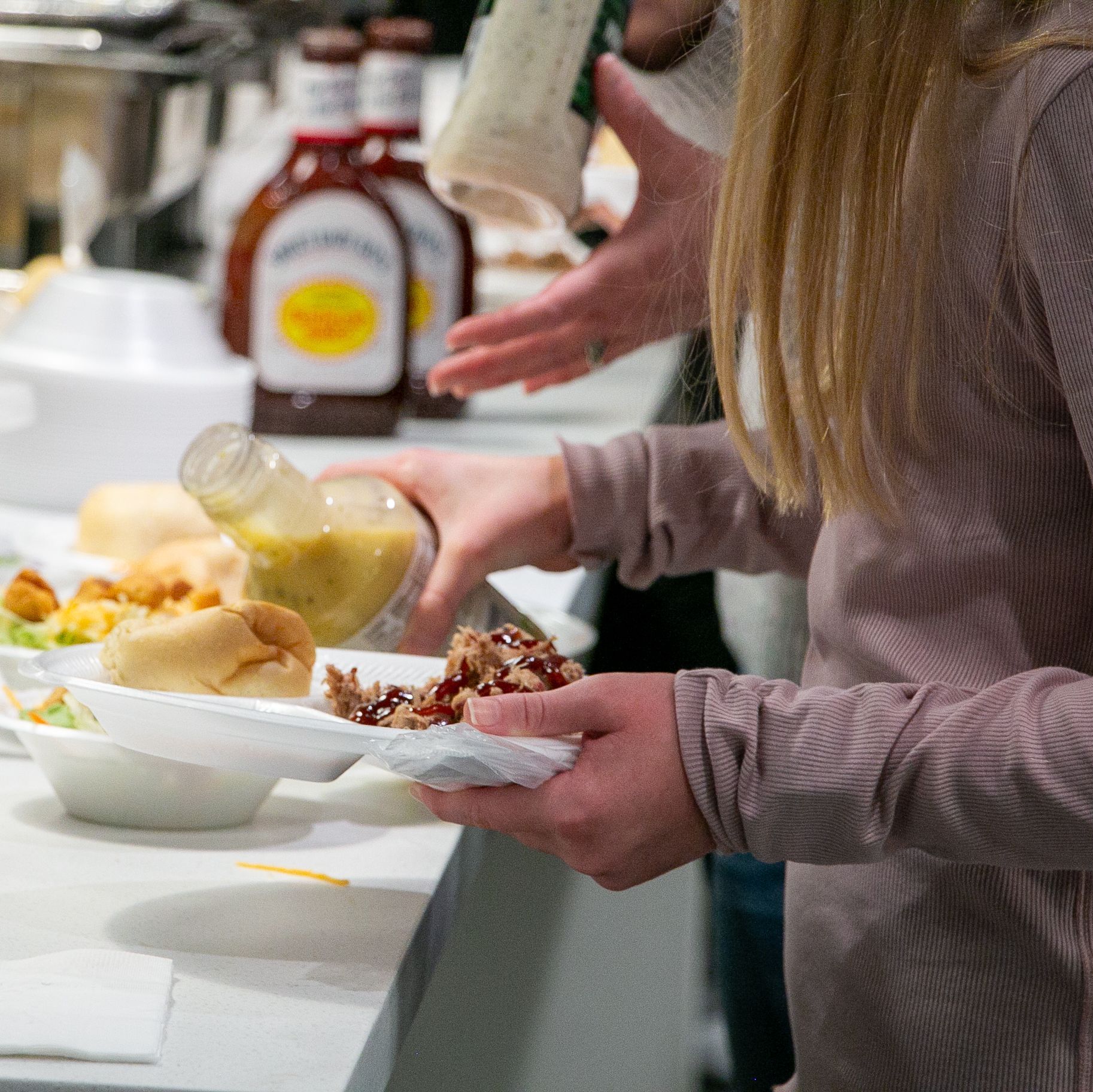 *Price for (1) one trip through hot meal line OR pizza (2 slices) OR Sub & chips and includes drink and dessert (while supplies last). Pay at the table by the Commons Kitchen. Seating is available in the Gym.